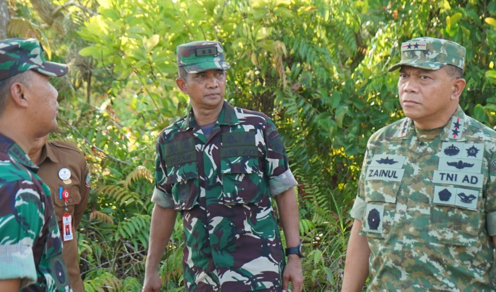 Palangka Raya – Kasdim 1016 Palangka Raya Letkol Arm Khazanatul Israr, dampingi Panglima Kodam XXII Tambun Bungai Mayjen TNI Zainul Arifin meninjau lokasi rencana pembangunan Resimen Induk Kodam XXII/Tambun