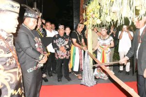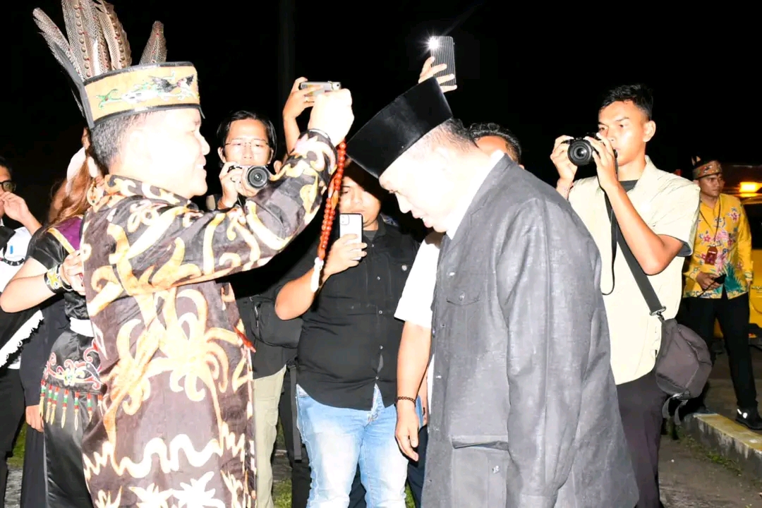 Nusron Wahid beserta rombongan tiba dari Jakarta pukul 18.20 WIB dengan pesawat Batik Air ID6200 dan disambut iringan tarian tradisional khas Dayak serta prosesi potong pantan.