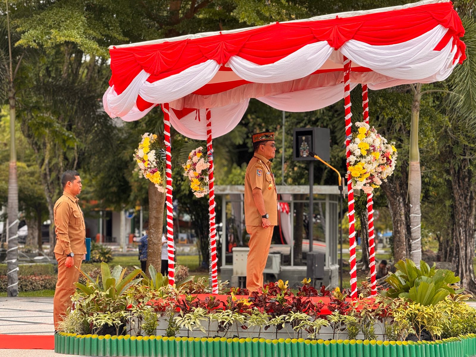 “Hari ini kita tidak lagi mengangkat bambu runcing, tapi mengangkat ilmu, kerja keras, dan kejujuran. Namun semangatnya tetap sama: Indonesia harus berdiri tegak, Indonesia tidak boleh kalah,” tegas Gubernur.