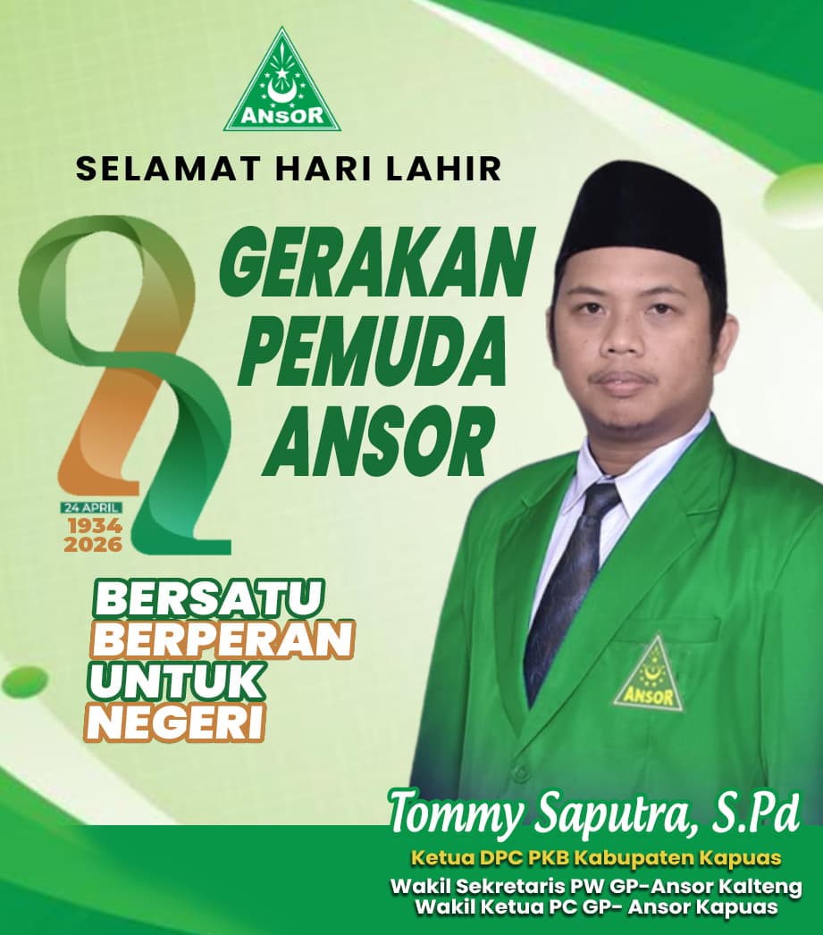 WWW.ARUSKAHAYAN.COM, KAPUAS,- Gerakan Pemuda (GP) Ansor hari ini resmi merayakan hari lahirnya (Harlah) yang ke-92. Organisasi pemuda di bawah naungan Nahdlatul Ulama (NU) ini telah melewati perjalanan panjang selama sembilan dekade dalam mengawal ulama serta menjaga keutuhan Negara Kesatuan Republik Indonesia (NKRI).