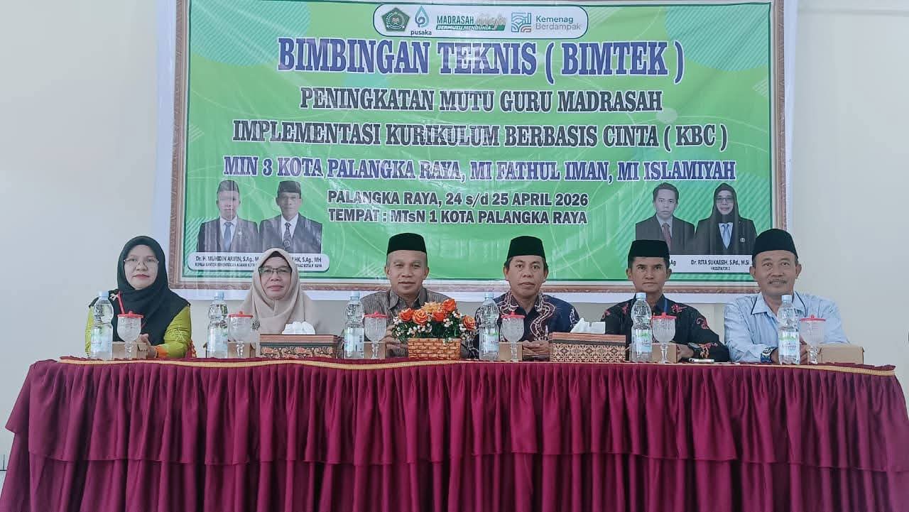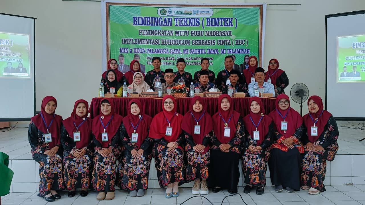 melalui panitia pelaksana Bimtek KBC MIN 3 Kota Palangka Raya menggelar Bimtek Implementasi Kurikulum Berbasis Cinta bagi Empat Madrasah Ibtidaiyah Kota Palangka Raya.,Kegiatan tersebut dibuka secara resmi oleh Kepala Kantor Kemenag kota H. Muhidin Arifin di Aula MTsN 1 kota Palangka Raya, Jumat (24/4/2026)