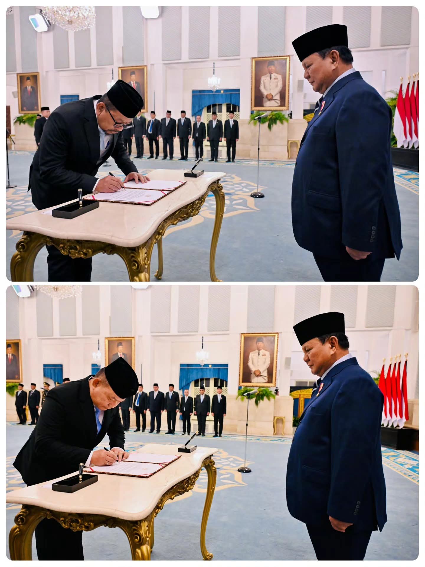 Presiden Prabowo Subianto, didampingi oleh Wakil Presiden Gibran Rakabuming, secara resmi melantik sejumlah pejabat negara untuk sisa masa jabatan periode tahun 2024-2029 di Istana Negara, Jakarta, pada Senin, 27 April 2026.